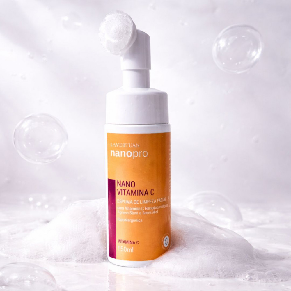 Vitamina C Nanoencapsulada: É um potente antioxidante que auxilia na proteção da pele contra os danos dos radicais livres. Ajuda a clarear manchas, uniformizando o tom da pele e conferindo um aspecto mais luminoso.