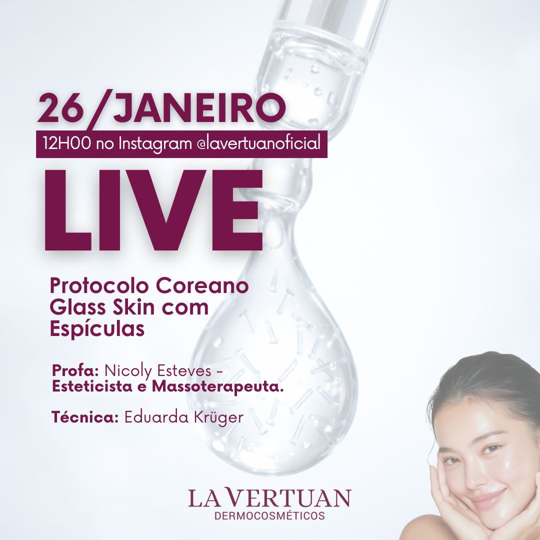 Na próxima segunda-feira, dia 26/janeiro, às 12h00, as Especialistas da La Vertuan irão ministrar um treinamento ao VIVO sobre o protocolo Protocolo Coreano Facial Glass Skin.